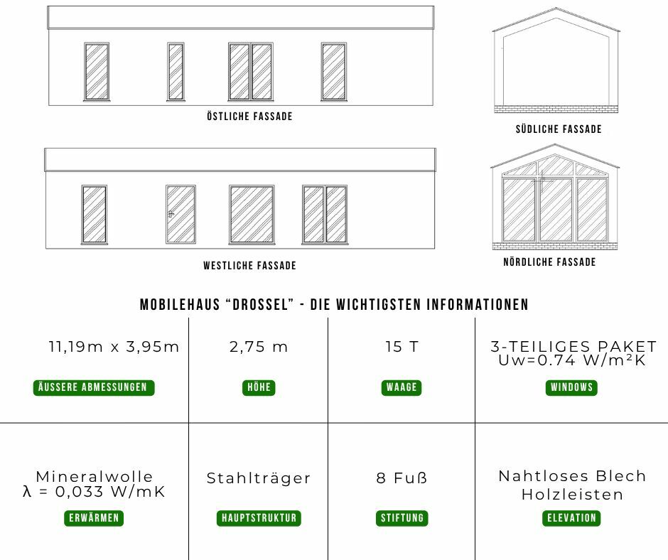Długość budynku (ponad 11 metrów) pozwala na rozmieszczenie okien w sposób zapewniający
